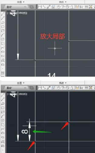 5、有些标注须先放大局部再进行标注,防止捕捉错端点使尺寸错误。