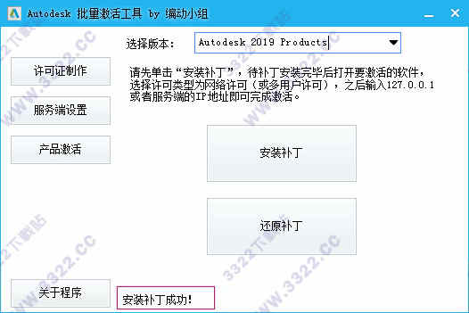 4、进入“产品激活”,选择要安装补丁的版本,点“安装补丁”。