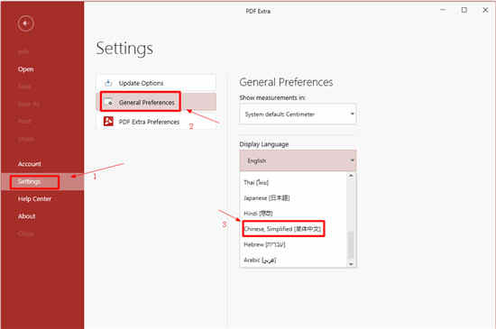 首先运行软件进入界面,选择Settings,再点击General中的Language,即可切换中文简体