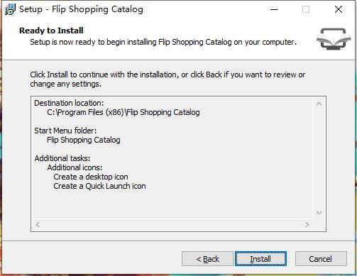 安装向导默认设置的软件默认安装路径为C:\Program Files (x86)\Flip Shopping Catalog