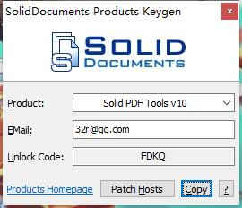7、将Keygen文件下的子文件复制到软件文件中,双击打开注册机,将Product选择到Solid PDF Tools v10,EMail可随意输入,复制注册码