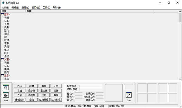 句柄精灵是一个窗口辅助工具,可以用于获得窗口各种信息和属性。其中包括窗口类,大小,样式,状态,字体等相关内容。此外,它可以控制一个窗口的状态,比如显示或隐藏,置顶,透明,更改样式等等。可查看窗口和控件句柄、类名、标题、风格等信息。可获取窗口的类名和Title,可向窗口发送文字,可控制窗口状态,如显示、隐藏、置顶、关闭、终止等,可以突破灰色的按钮。可以用来修改窗口的样式信息,如是否可调整大小、是否可最大化,是否有标题栏等等,不过只能在内存中修改。非常强大的一款软件,可以让你很方便查看各种句柄,浏览句柄。省去很多繁琐的操作,节约你的时间。有需要的用户可以下载体验!