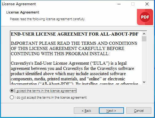 安装向导默认设置的软件默认安装路径为C:\Program Files\All-About-PDF
