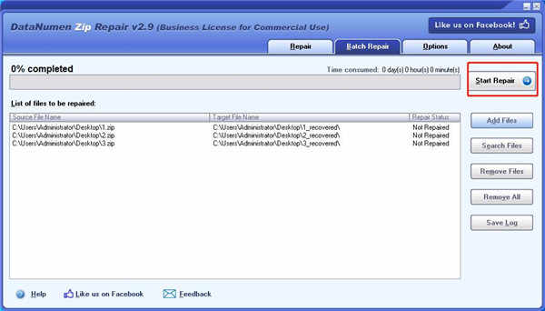5、添加多个需要恢复的zip添加到软件,点击start repair按钮就可以开始执行修复