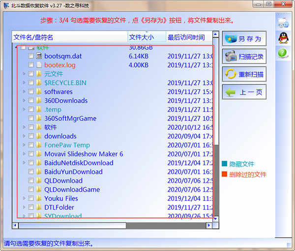 3、自动对隐藏文件以及删除过的文件进行颜色标记,便于更好的查找。