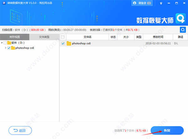 运行数据恢复大师,能够对被格式化磁盘进行扫描,预览扫描结果,预览正常的文件就可以恢复使用。