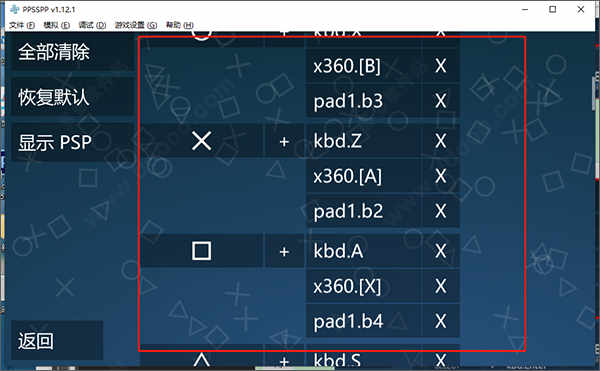 4、在这里即可看到ppsspp模拟器电脑对应按键,首先我们设置上下左右按键。