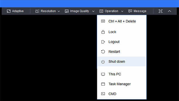 现在,您可以向另一台计算机提供远程协助。值得一提的是,AnyViewer还有一些实用的功能。您可以通过快速打开任务管理器查看 CPU 存储占用情况、运行 CMD 修复损坏的文件系统等来解决问题。