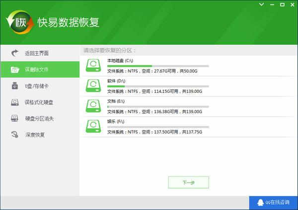 快易数据恢复官方正式版是目前电脑上最优秀的一款数据恢复软件,该软件功能强大、界面简洁、操作简单,拥有误删除文件、U盘存储卡、误格式化硬盘、硬盘分区消失、深度恢复五大栏目,可以轻松恢复硬盘、U盘、移动硬盘、SD卡、内存卡、相机卡、手机卡等多种设备的数据,并且恢复速度快,准确率高。