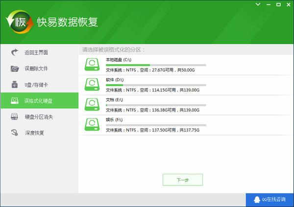 磁盘格式化未备份文件运行该功能,能够对被格式化磁盘进行扫描,预览扫描结果,预览正常的文件就可以恢复使用。