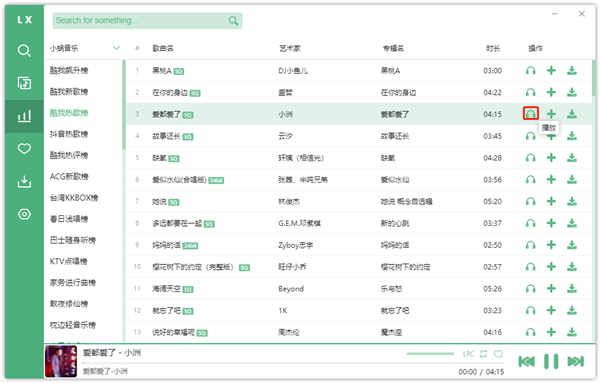 3、在众多热门歌曲中找到自己感兴趣的,点击右侧的播放即可;