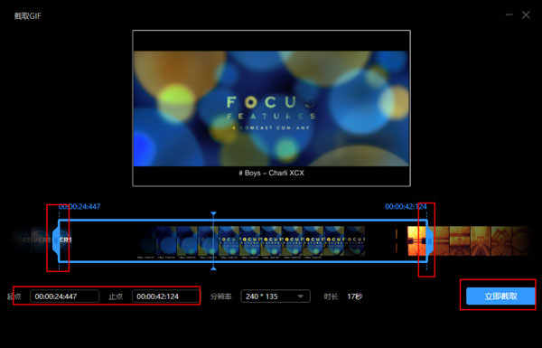 ① 拖动预览图列表两端,选取需要截取的起点和止点