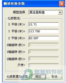3、用一个已知点(WGS84坐标和北京54坐标),计算不同椭球转换的三参数(或七参数)。