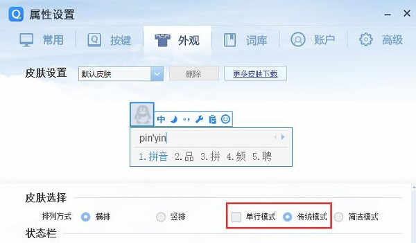横排模式下可以选择传统模式皮肤,和简洁模式皮肤;横排时,还可以单独选择单行模式,单行模式不能与传统模式和简洁模式并存。