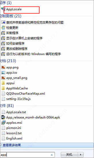 1、在“开始”菜单快捷搜索框中输入“Applocale”,运行主程序;