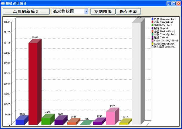以直观的图表形式来显示出蜘蛛流量的占比情况,一目了然。