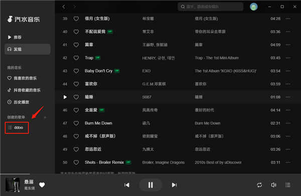 3、创建的歌单会在这里显示,可以说非常的方便。