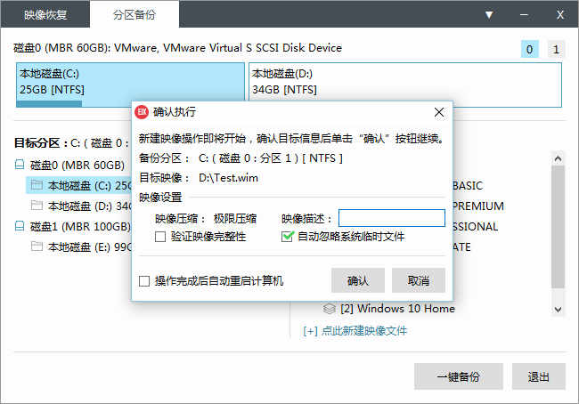 (5).wim备份时“自动忽略系统临时文件”功能可自动忽略系统垃圾与临时文件,有效减少映像体积;