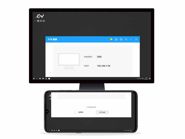 1、手机与电脑分别打开EV扩展屏(手机与电脑需处于同一个网络下)