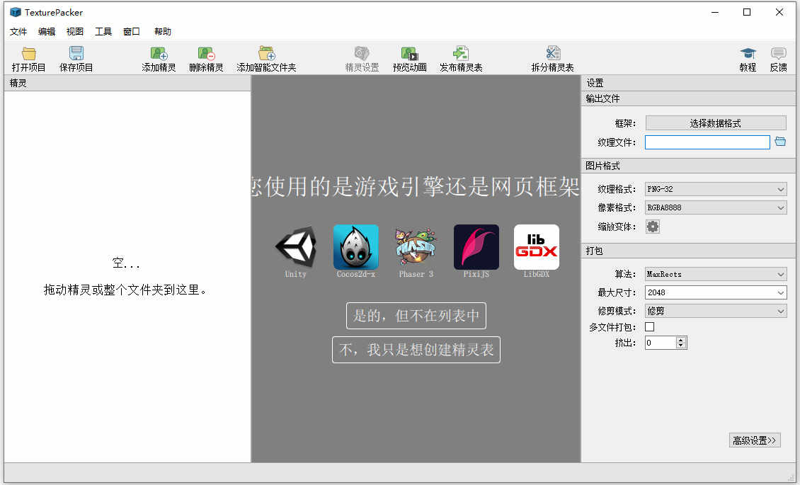 1、创建一个精灵表只需要将您的精灵拖到该软件上;