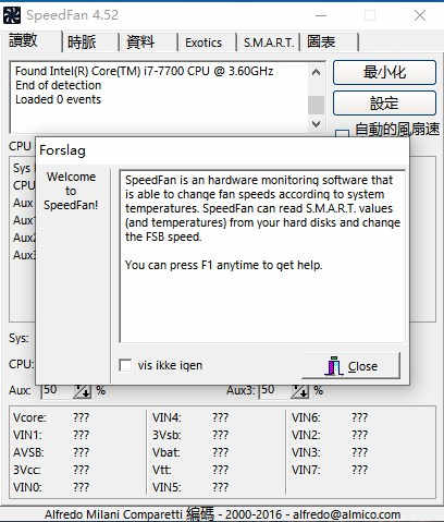 2、第一次启动SpeedFan软件,SpeedFan会自动检测电脑的硬件情况