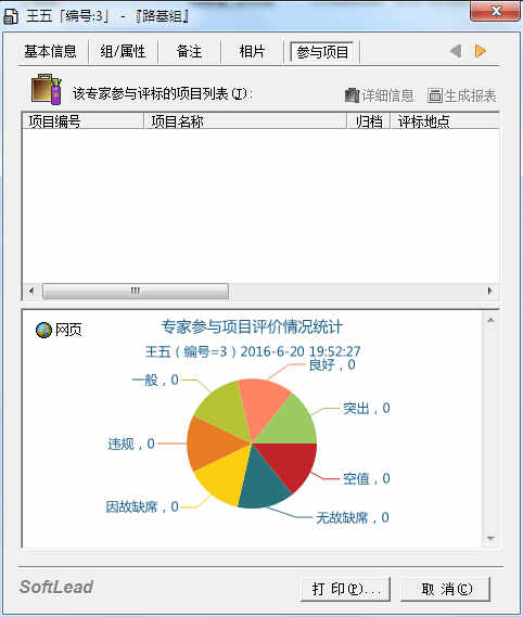 7、专家浏览时,统计可以饼图统计该专家的参与项目评价情况。