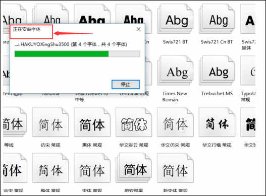 3、开始安装字体,完成就安装好了,这是比较简单适合字体文件少,如果文件多,就用后面介绍的方法